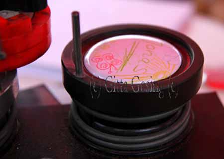 | 40012889 Kinder malen ihren eigenen Button | 40012890 Maschine presst die Button | 40012891 Sie presste die Button zusammen |