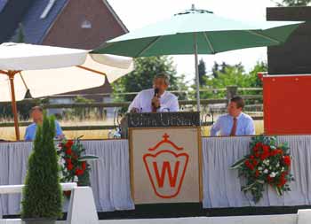 40027949 Auktionator Bernd Richter begrüßte das Publikum für die Auktion der dressurbetonten Fohlen |