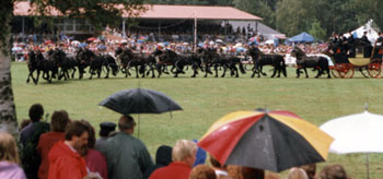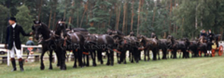 ![]() 16 PS - 16 Friesenpferdestuten vor der alten Postkutsche - Fahrer Piet de Boer