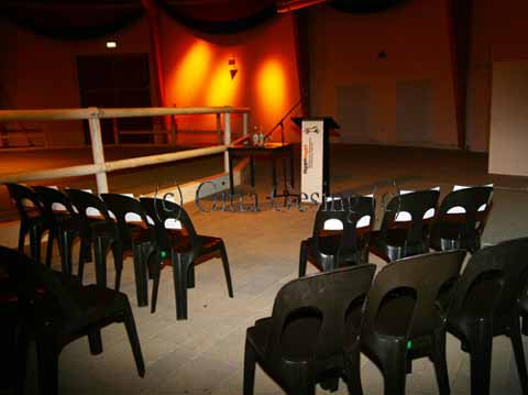 | Links des Eingangs in der Hippomaxx Arena standen die Stühle für die geladenen Gäste. Die Wände schmückten bunte Lichter, die so eine zauberhafte Stimmung erzeugten. So schön und mystisch hatte ich die Arena noch nicht gesehen. |