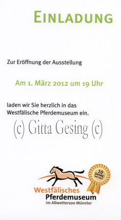 Vernissage/Eröffnung der Sonderausstellung im Westfälischen Pferdemuseum im Allwetterzoo Münster (D) mit der Hippomaxx Arena vom 2. März 2012 bis 23. September 2012